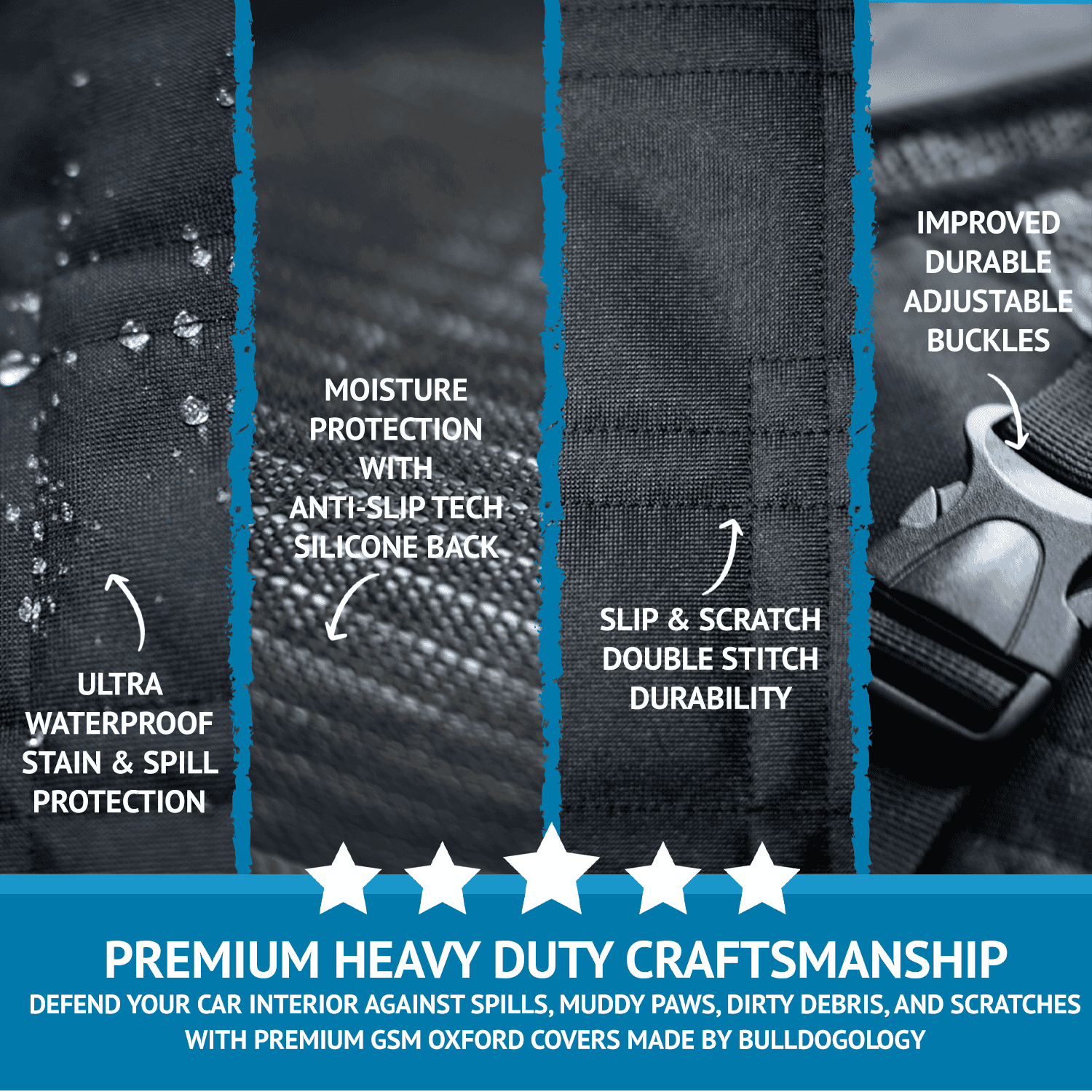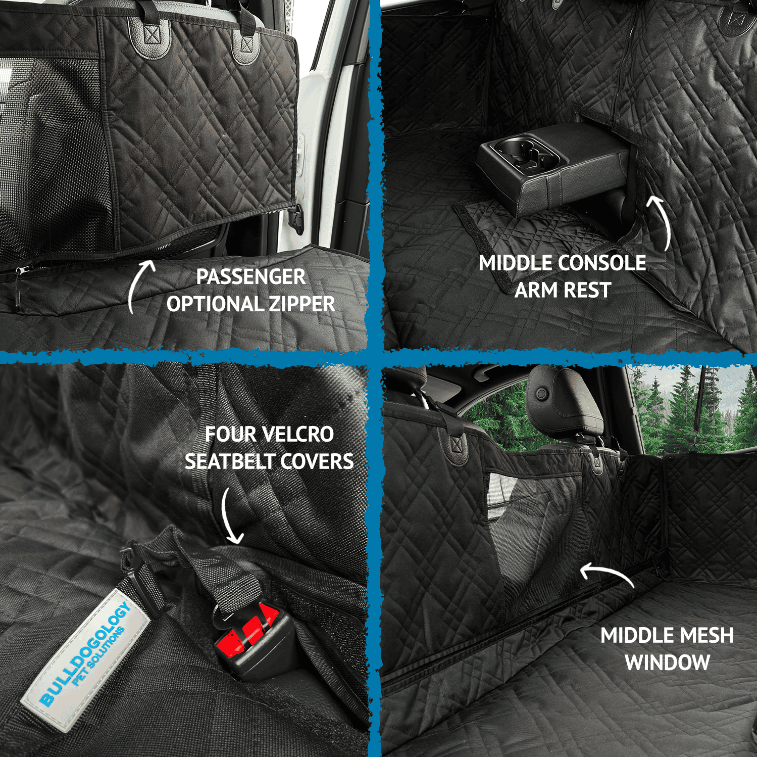 - Ultimate Pet Seat Protection: Keep your car clean from pet hair, mud, and scratches with Bulldogology’s robust pet seat cover. Designed with a mesh window, zipper, full door coverage, and thick layers, it’s made from double-stitched, premium 600D GSM Oxford material for lasting satisfaction.