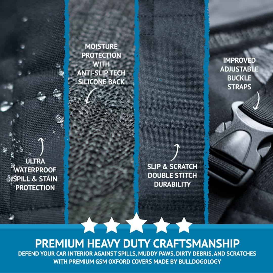 - Bulldogology premium heavy-duty covers come with adjustable straps that allow you to fit the rear seat of cars, trucks, and SUVs.