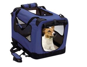 Soft-sided crates are designed to be lightweight and easily fit into large vehicle spaces. They are made of fabric or canvas and can be easily collapsed for easy storage.