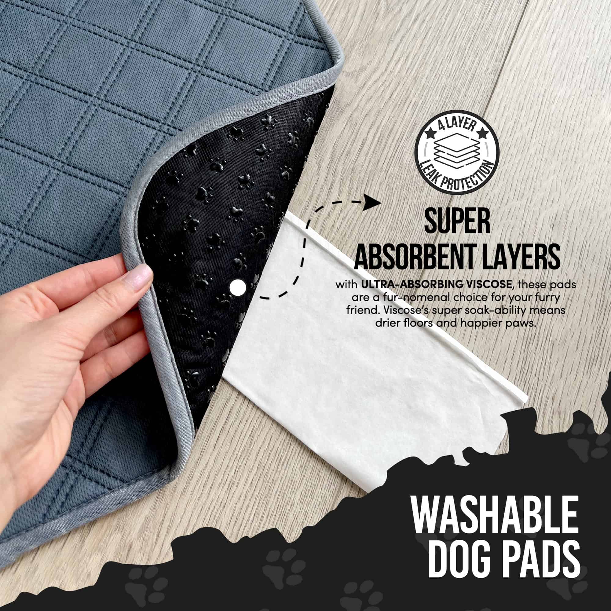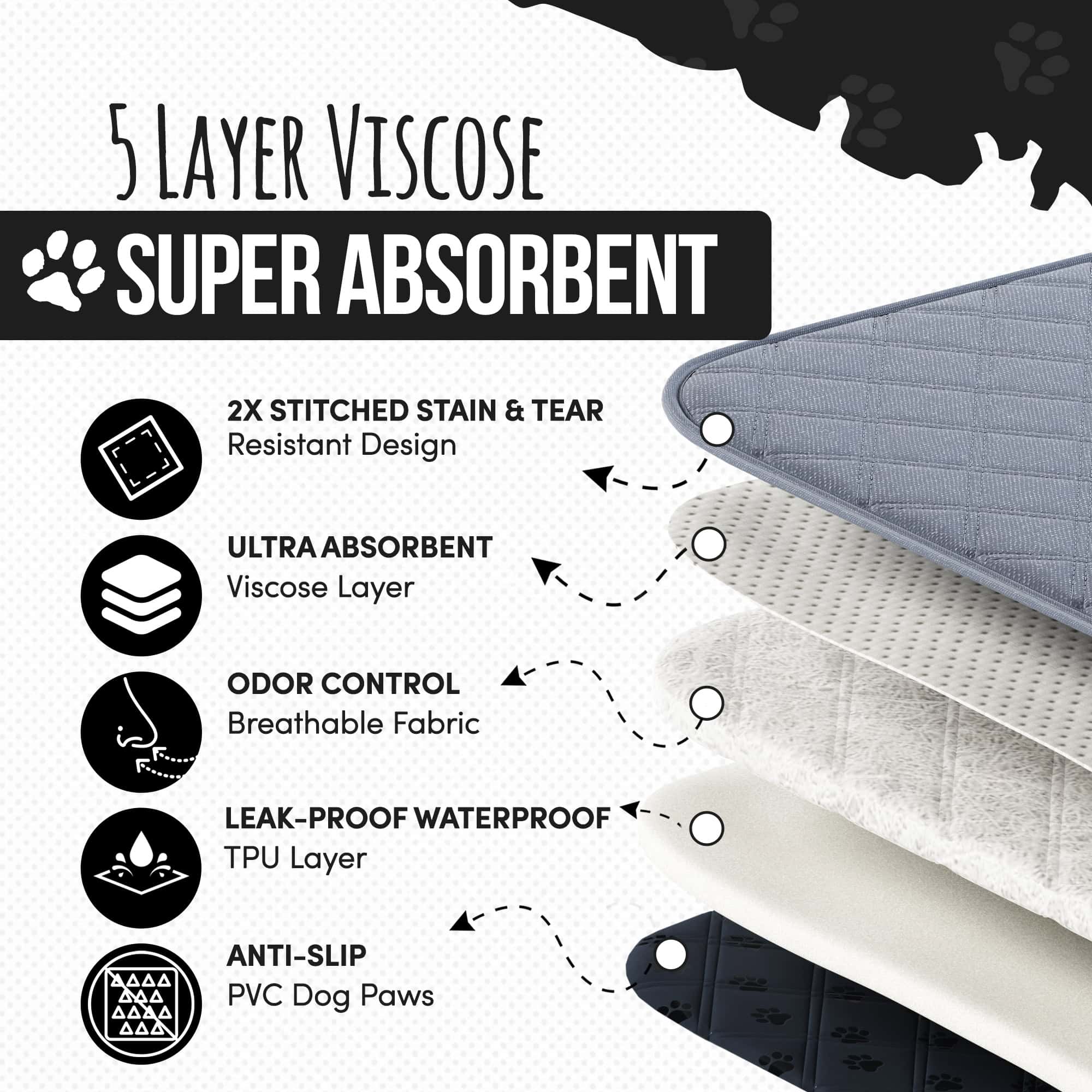 - 100% REUSABLE PUPPY PADS: Premium non-slip washable pee pads for dogs are ultra-absorbent and contain no toxic chemicals or perfumes.