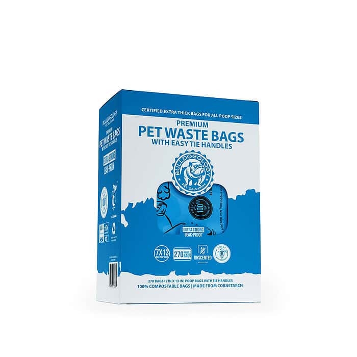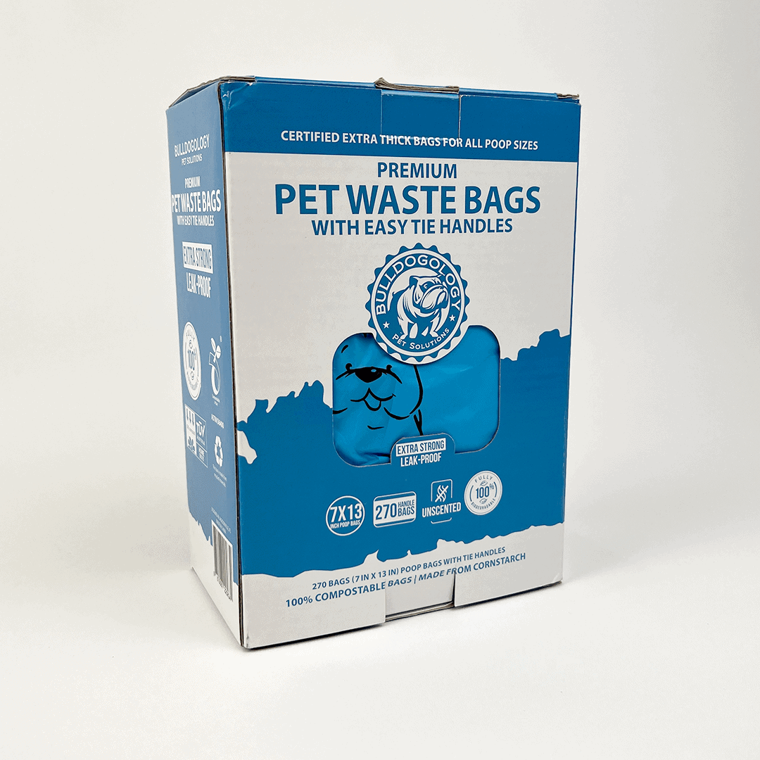 Keep your yard and community clean with our premium pet waste bags! Made from durable, leak-proof material, these bags are strong enough to handle even the messiest of cleanups. Convenient and compact, they fit easily in your pocket or leash. Say goodbye to unpleasant odors and unsanitary conditions, and show your love for the environment by choosing our eco-friendly pet waste bags. Each 270-count pack comes with 7×13 inches bags that are large enough to accommodate waste of any size, and equipped with handles to make tying and disposing a breeze. Make picking up after your furry friends messes a hassle-free task with Bulldogology’s Pet Waste Bags with Handles.