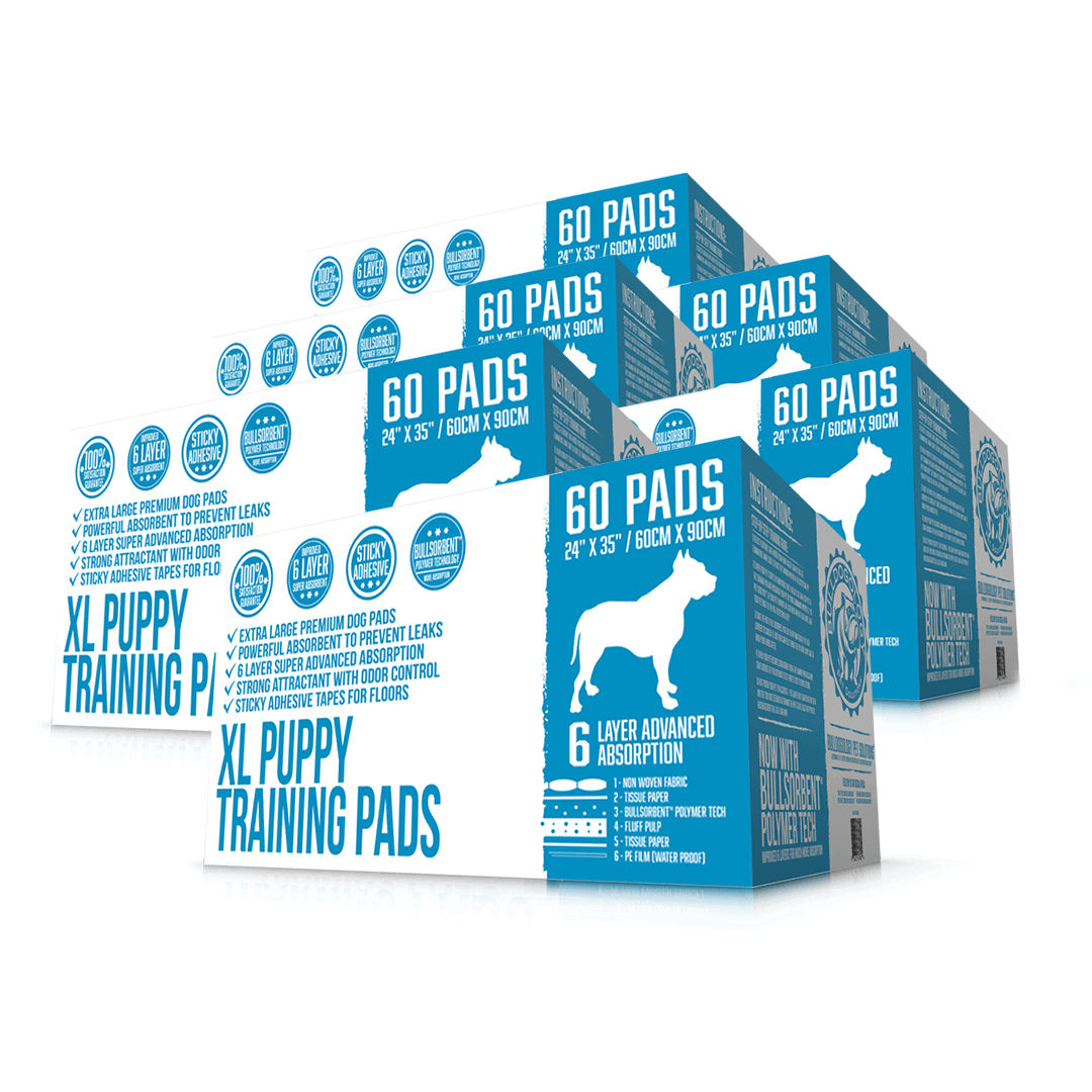 This bundle comes with 360 count of absorbent extra-large (24×35″) pee pads with our own Bullsorbent® polymer that instantly absorbs fast and turns liquid into gel, keeping floors and carpets quickly dry.