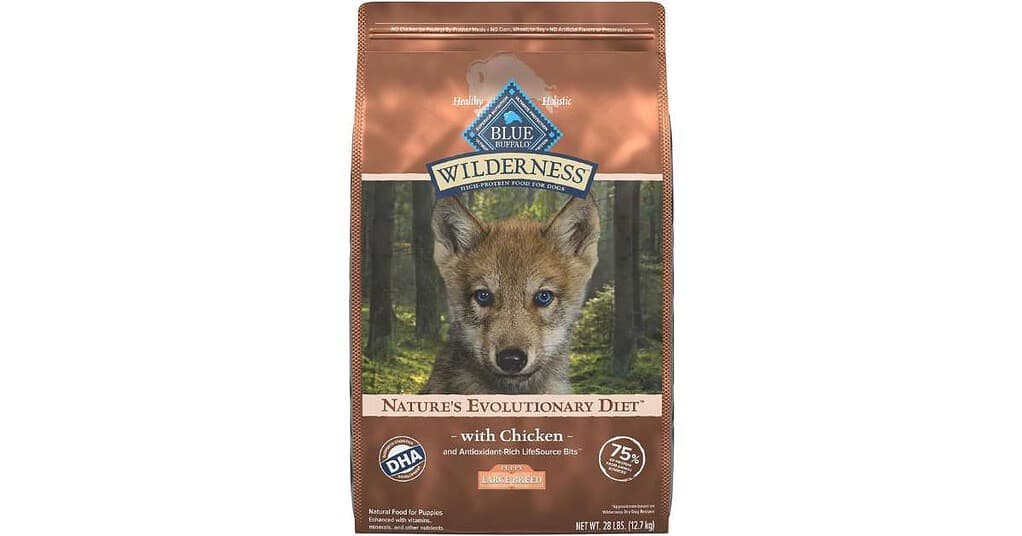 2) Blue Wilderness Puppy: Tailored for puppies with a high-protein focus, the Blue Wilderness Puppy formula is grain-free and inspired by the diet of wolves. It includes deboned chicken or other protein sources.