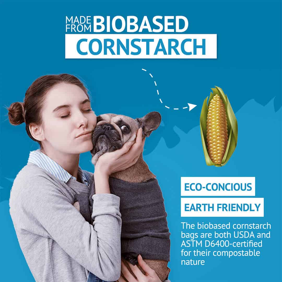 • CERTIFIED RECYCLED MATERIALS: We ensure that our pet waste bags are built to the highest manufacturing standards. The biobased cornstarch bags are both USDA and ASTM D6400-certified for their compostable nature, so you can truly put your trust in our product as a more eco-conscious choice.