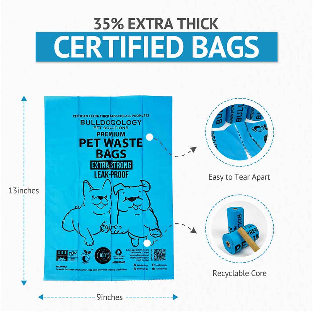 Introducing the Pet Waste Bags from Bulldogology, the only extra-strong, unscented, and biodegradable dog poop bags you’ll ever need. Perfect for dealing with dog waste of any size, along with fitting any dispenser.